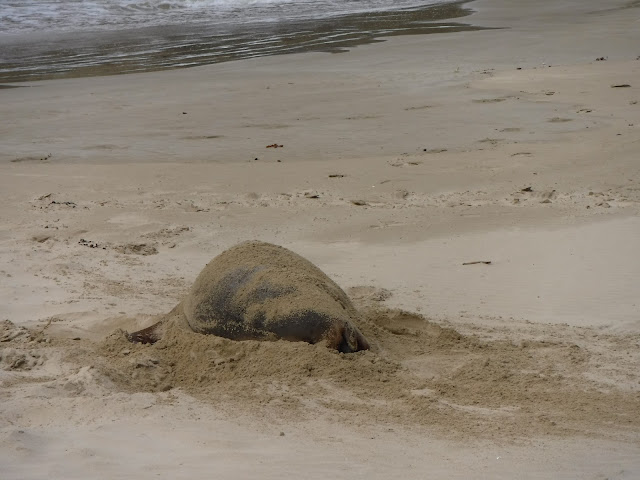 We followed him right down to where two other sea lions were sleeping but who got up at his approach. One greeted the sea lion we had been following, but the other roared a warning. We only stayed for a few minutes after that, before returning to the car.
